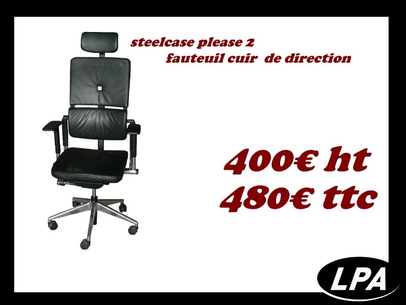 fauteuil de direction steelcase Please 2 avec têtière accoudoir 3D système synchrone deux dossiers indépendants (idéal pour les mal de dos) mécanisme LTC² brevet possibilité d'envois Matériaux : cuir/métal/plastique Couleur : noir Quantité : 2 |