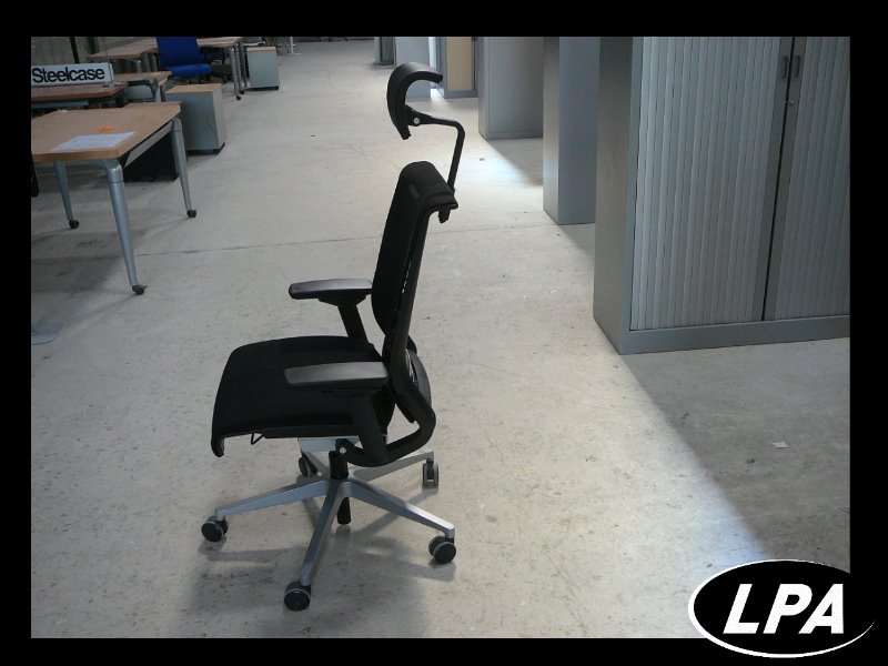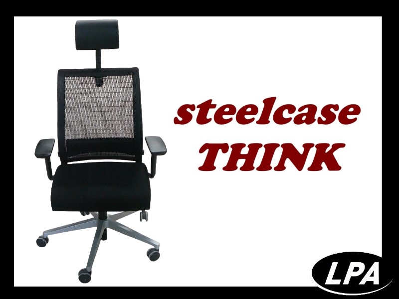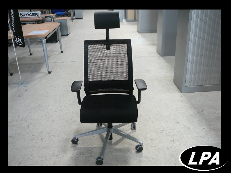 fauteuil direction steelcase THINK noir avec têtière accoudoirs 3D système synchrone flexors métalliques intégrés recyclable à 99% (poids) Matériaux : tissus/acier/plastique Couleur : noir Quantité : 1 |