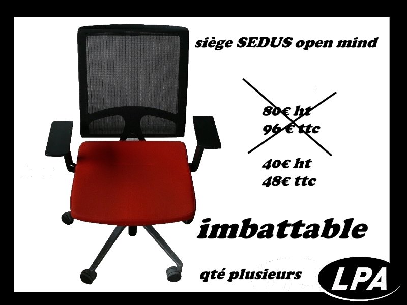 siège SEDUS open mind up assise rouge dossiers résille noir réglage de l'inclinaison de l'assise (4°). système synchrone Mécanisme Similar avec angle d'ouverture à 32° Mécanique Sedo-Lift qté plusieurs Quantité : 0 |